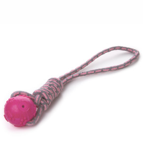 Bavlněné přetahovadlo s TPR míčkem, růžovo-šedé, hračka pro psy na přetahování, 6 cm, ideální pro aktivní hruSkladem 6 ks75 Kč/ ks62 Kč bez DPH