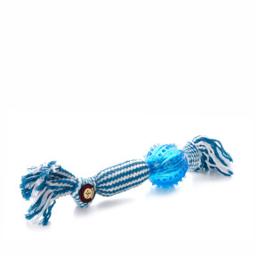 Bavlněná hračka pro psy s TPR míčem. Hračka má uvnitř zapletený pískací válec. Díky svým bavlněným vláknům skvěle čistí zuby. Hračka je vhodná pro použití venku i doma. Díky pískátku hračka skvěle upoutá pozornost psa a více se tak soustředí na zábavnou hru.