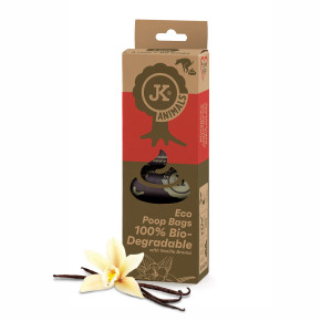 Bio-rozložitelné sáčky pro psí exkrementy s vůní vanilky. Hnědé sáčky s vůní vanilky jsou vyrobené z kukuřičného škrobu a samy se rozloží. Sáčky s certifikátem TÜV. Box obsahuje 90 samostatných sáčků v 6 rolích. Díky těmto sáčkům šetříte přírodu a snižujete zatížení planety plastovým odpadem.