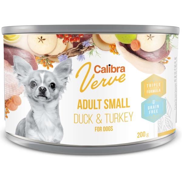 Kompletní vlhké krmivo bez obilovin určené pro dospělé psy malých plemen. Recepturu tvoří nevšední kombinace kachního a krůtího s mrkví, jablky, šípky a rakytníkem.