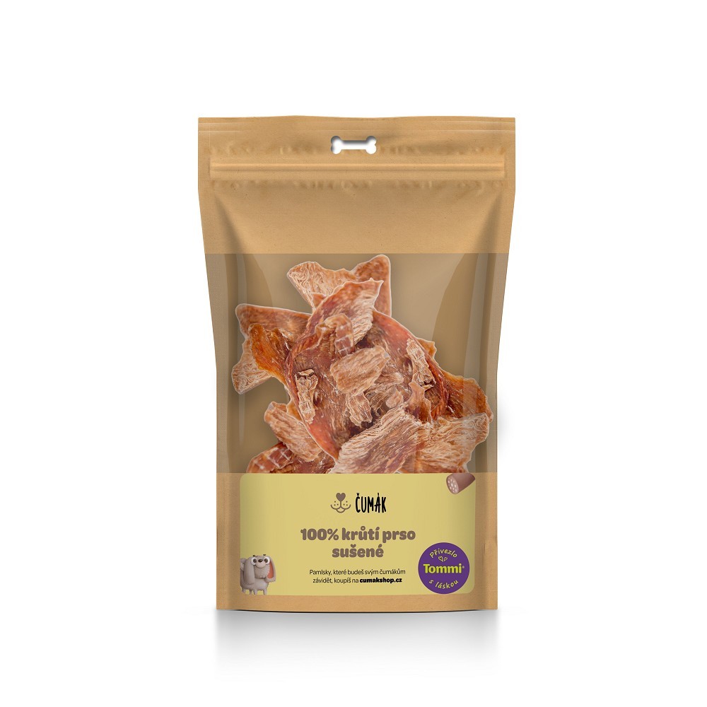 Ne náhodou je krůtí prsíčko náš pilotní pamlsek. Sušené krůtí prsíčko (usušeno z 200g syrového masa) v sobě má spoustu bílkovin, nízký obsah tuku, je hypoalergenní, a hlavně strašně dobrý. Kromě šťastného čumáku tak pomůže vašemu mazlíčkovi i k nádherné srsti a zdravým svalům. Je jen na vás, jestli ho odměníte malým kouskem, anebo svoje spektrum lásky vyjádříte pořádnou porcí. Musíme vás ale varovat, hrozí totiž, že po prvním balíčku už jiné pamlsky nebudou vašemu čumákovi po chuti. Složení: Krůtí prso 100 % (sušené v potravinářské kvalitě) Energetickáhodnota: 690 kJ (165 kcal) Výživovéhodnoty: Bílkoviny 82,9 %, tuky 4,78 %, cukry 0,47 %, vláknina 0,17 %