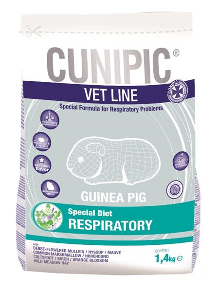 Kompletní vyvážené krmivo pro morčata obsahující divoké luční seno a léčivé rostliny, které pomáhají zlepšit funkce dýchacího systému morčat. Obsažené léčivé byliny mají příznivý vliv na snížení příznaků kašle, zánětů a infekcí dýchacího traktu, zápalu plic, bronchitidy, alergií či astmatu. Receptura Respiratory nemá žádné vedlejší účinky a může být používána dlouhodobě.