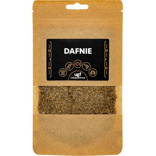 Dafnie je čistě přírodní krmivo, které je přirozenou potravou pro ryby, krevety, kraby, mloky a vodní želvy. Dafnie (hrotnatka) je nejběžnější druh malých korýšů o velikosti 2–4 milimetry (vodní sušený plankton, tzv. vodní blechy), který plave na vodní hladině. Jde o skvělý doplněk do vnadicích směsí a boilies pro rybáře.