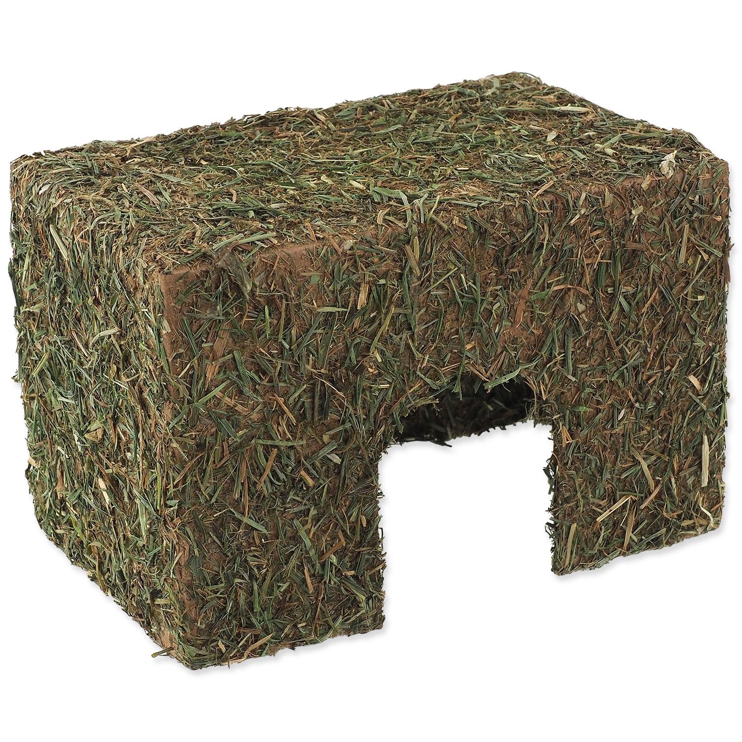Domek ze sena pro menší druhy hlodavců. Velikost: 14 x 9 x 9,5 cm.