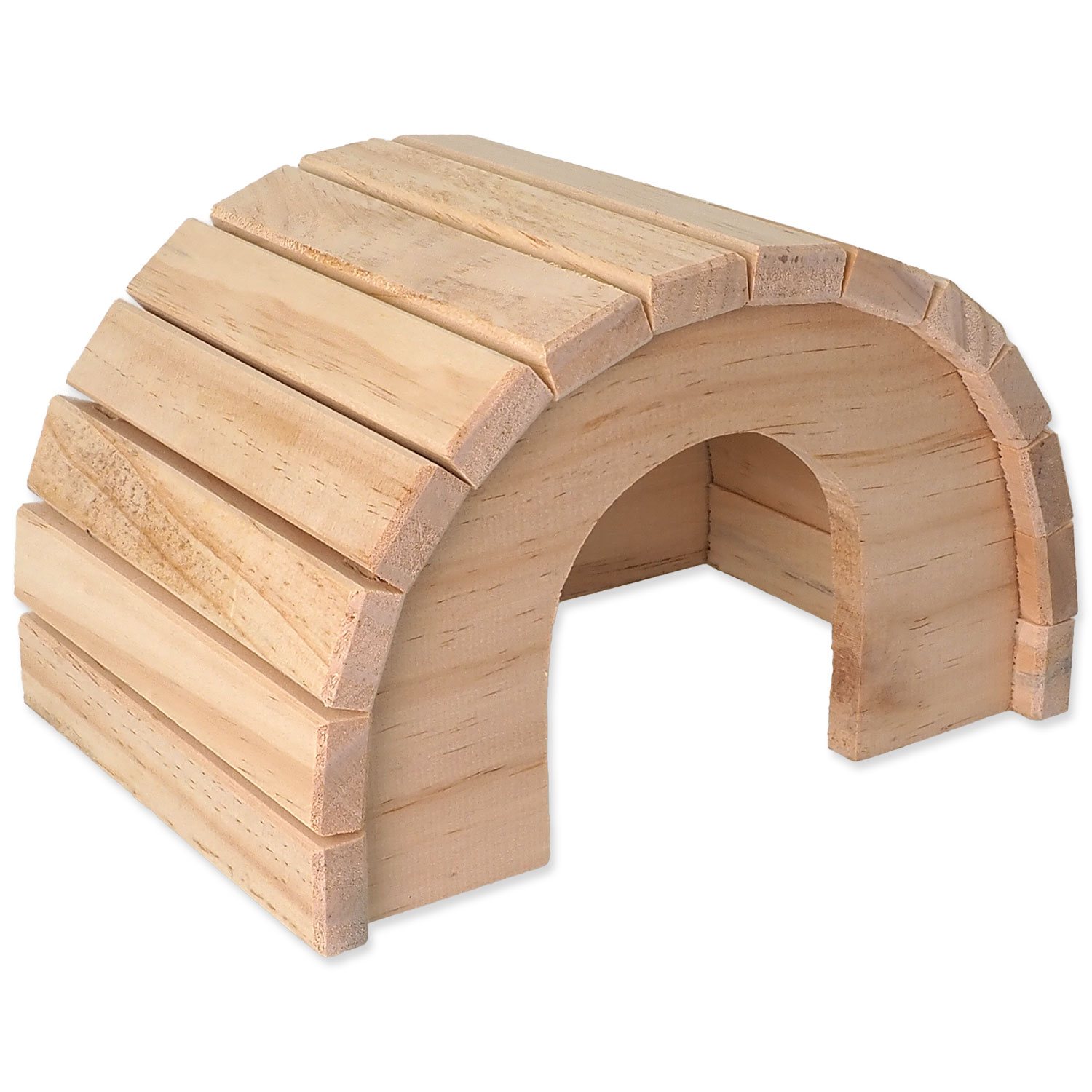 Dřevěný půlkruhový domek pro hlodavce. Velikost: 24 x 17 x 15 cm.