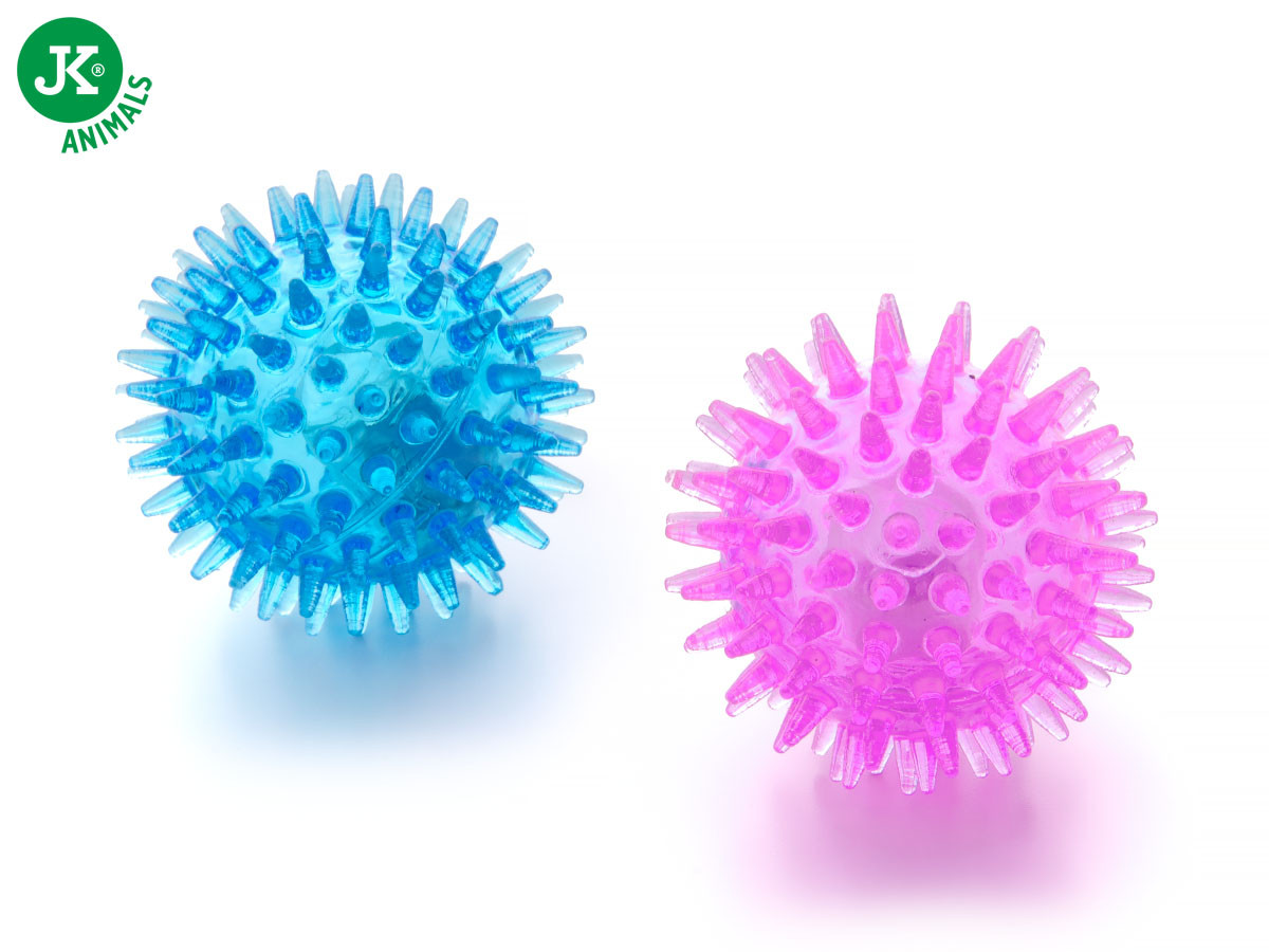 Dva blikající LED TPR míčky s bodlinami, modrý a růžový, odolná (gumová) hračka z termoplastické pryže pro psy i kočkySkladem 8 ks60 Kč/ ks50 Kč bez DPH