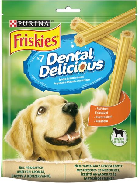 Žvýkací pochoutka s kuřecí příchutí pro psy o hmotnosti nad 10 kg. Slouží jako doplňkové krmivo pro dospělé psy. Pochoutka podporuje zdravé zuby a dásně.