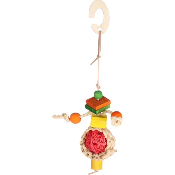 Flamingo Faruk Mix je přírodní závěsná hračka pro drobné savce všeho druhu. Uspokojí jejich zvědavost, zažene nudu a pomůže je udržet v dobré fyzické i psychické kondici. Je vhodná i k okusování – hlodavým mazlíčkům napomáhá v obrušování zubů. Na koženém provázku jsou navěšeny rozmanité barevné tvary ze dřeva, ratanu, kukuřičných listů a sisalu. Hračku snadno připnete ke kleci pomocí dřevěného háčku. Obsahuje zdravotně nezávadné barvy.