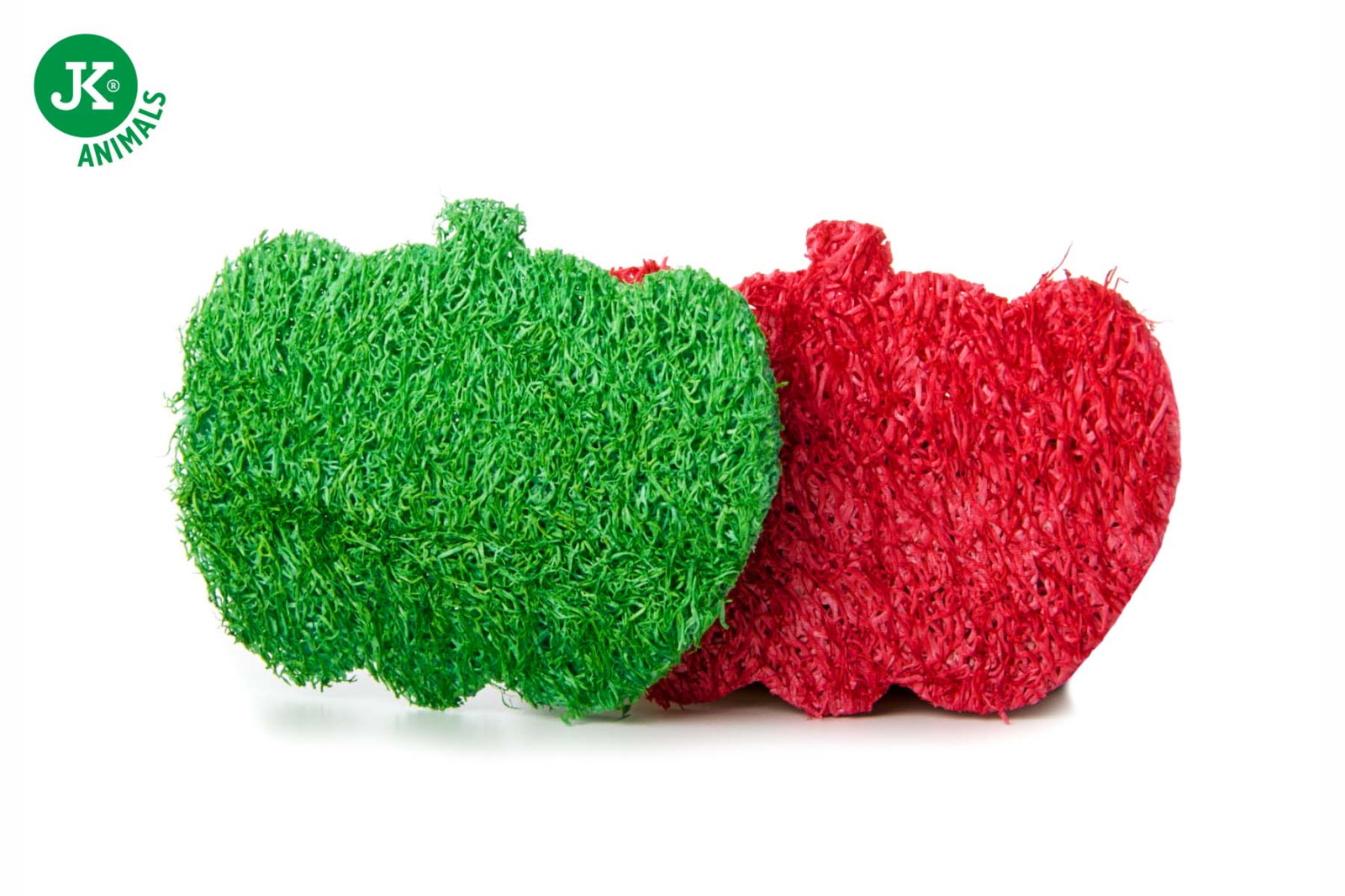 Dvě malá jablka z lufa houby pro křečky, králíky a jiná malá zvířata. Šířka jablka 7 cm. Jablka jsou vyrobeny z lufa houby.