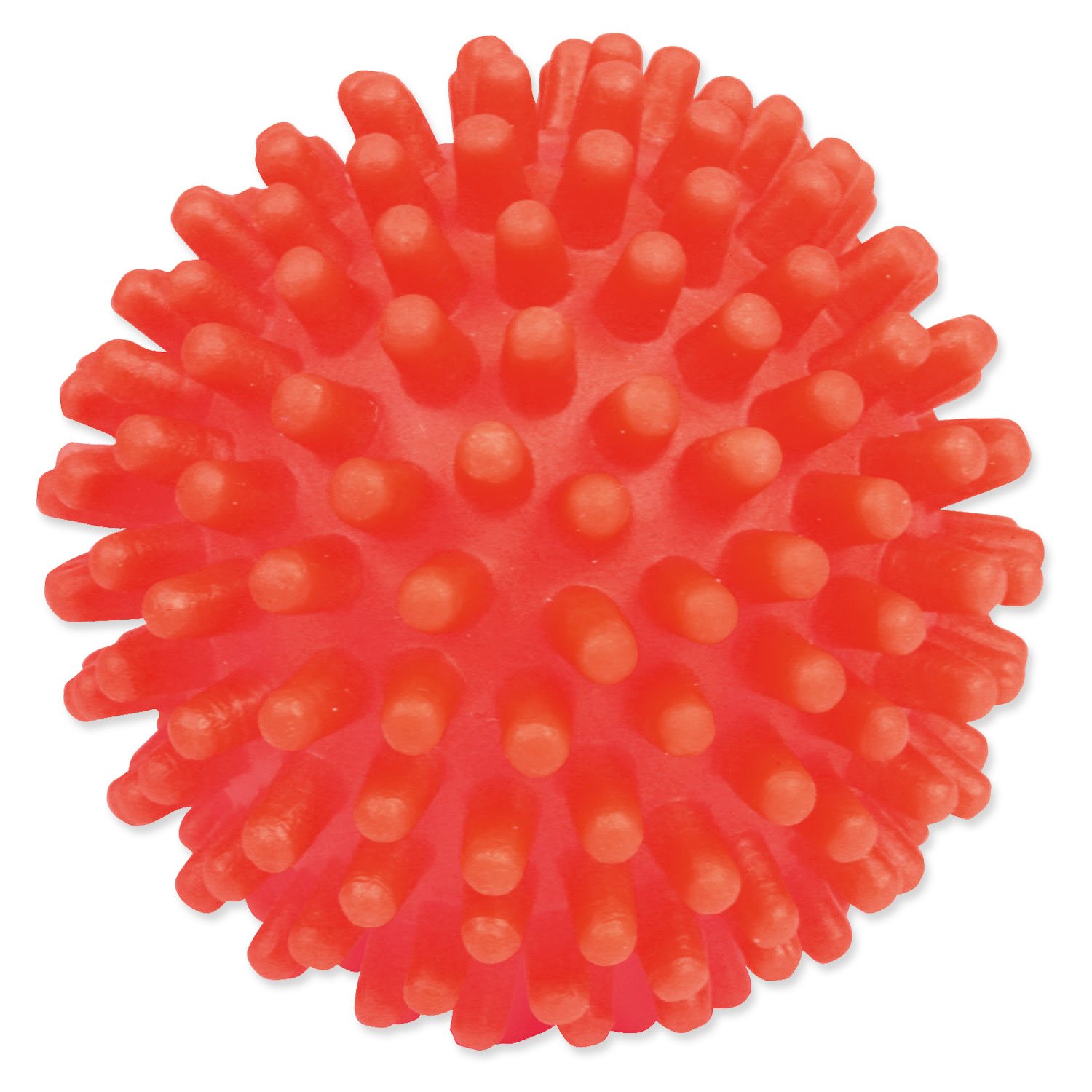 Hračka míček s bodlinami se zvukem pro psy. Tato hračka zabaví psa na dlouhou dobu. Míček je vyrobený z vinylu. Zvuk hračky bude psa neustále lákat ke hře. Bodlinky masírují dásně psa.