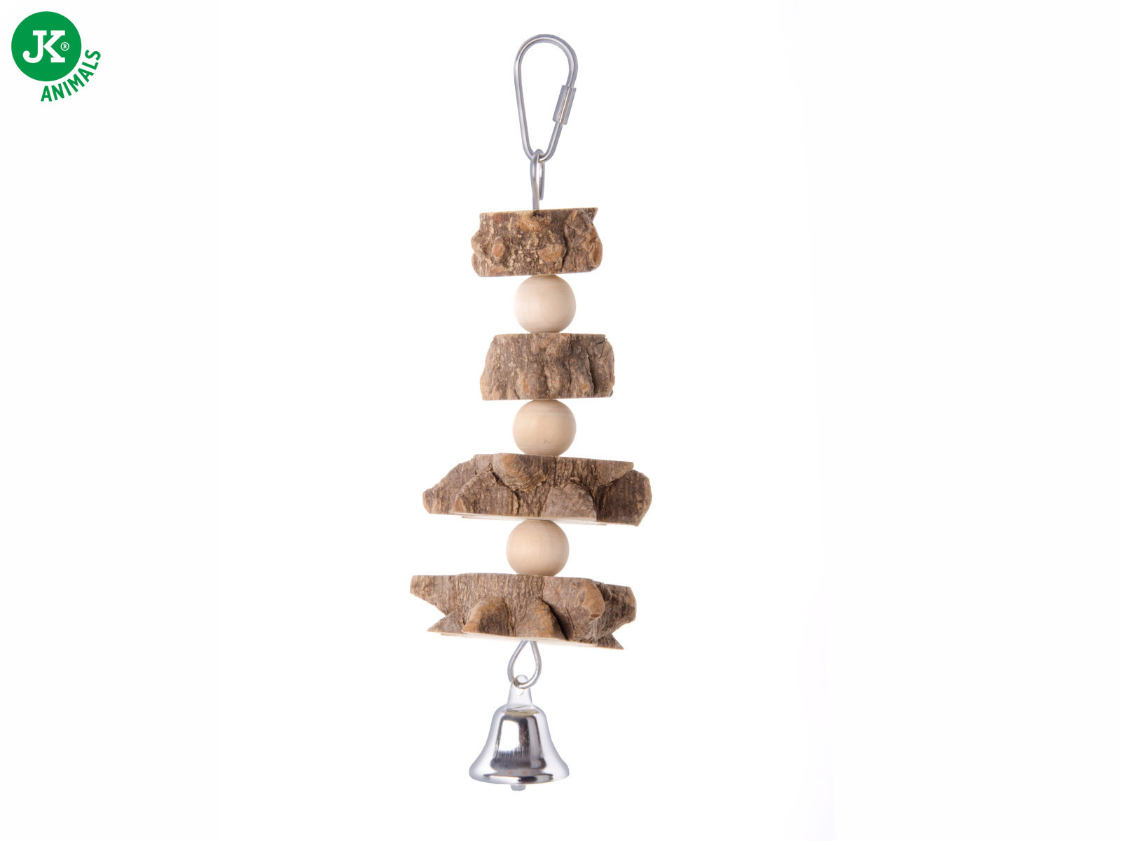 JK natural špíz, hračka s kovovým závěsem, díky kterému se snadno připevní do klece. Hračka je určena zejména pro stření papoušky. Někteří papoušci se mohou nové hračky bát. V takovém případě doporučujeme seznamovat papouška s novou hračkou pomalu a zpočátku ji nechat zavěšenou například zvenku na kleci, aby si na ni mohl papoušek pomalu zvyknout.