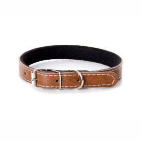 Kožený obojek JK Classic, natural, přírodní. Kožený obojek pro psy má nastavitelnou délku zapínání v rozmezí 31,5–41,5 cm. Obojek je ušitý z kvalitní italské kůže. Kvalitní prošití bílou nití elegantně dokresluje precizní zpracování. Ze spodní strany je obojek podšitý měkkým filcem, aby byl při nošení pro psa příjemný a nezařezával se. Pro připnutí karabiny od vodítka má obojek kovový kroužek.