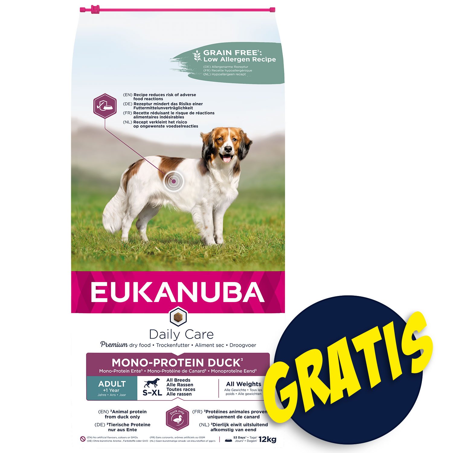 Krmivo EUKANUBA Daily Care Adult Mono Protein Duck 12kg+Pochoutka Rasco Premium kuřecí plátky 230g-KS