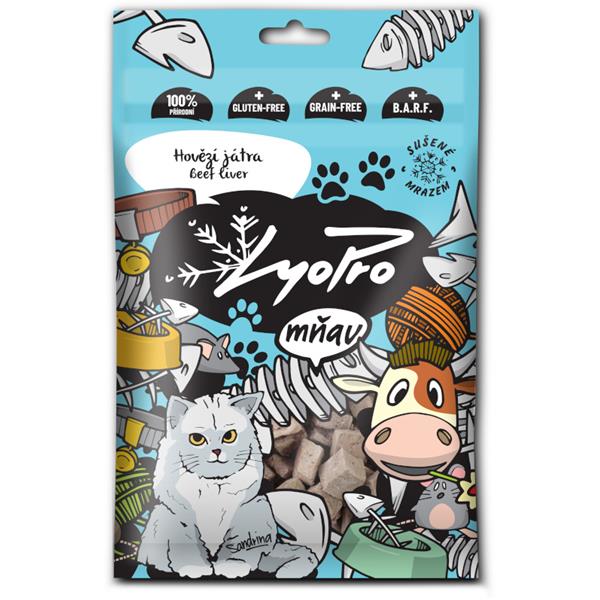 Křehká hovězí játra si díky šetrnému sušení mrazem (lyofilizaci) zachovávají své aroma, strukturu i plnou chuť, kterou kočky milují. Jde o ideální volbu pro BARF (krmení syrovou stravou), kočičí alergiky a celiaky. Další výhodou lyofilizace je dlouhá trvanlivost. Pamlsky se vyrábějí z čerstvých hovězích jater, která jsou jedním z nejlepších zdrojů vitamínů a minerálů. Obsahují až 100× více živin než svalovina! Při sušení mrazem navíc nedochází ke znehodnocení těchto živin. Jde tak o zdravou, lehkou a vysoce výživnou odměnu bez přidané chemie, obilnin, konzervantů a jiných balastních látek.