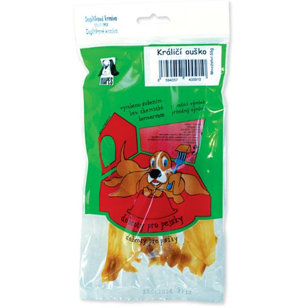 Králičí ouška s vysokým obsahem bílkovin a nízkým obsahem tuku jsou ideální pro psy v rekonvalescenci, se sklony k obezitě, pro štěňata i pro seniory s neúplným chrupem. Jde o skvělý zdroj kolagenu, tolik potřebného při vývinu a pro udržení dobré kondice kloubů a chrupavek.