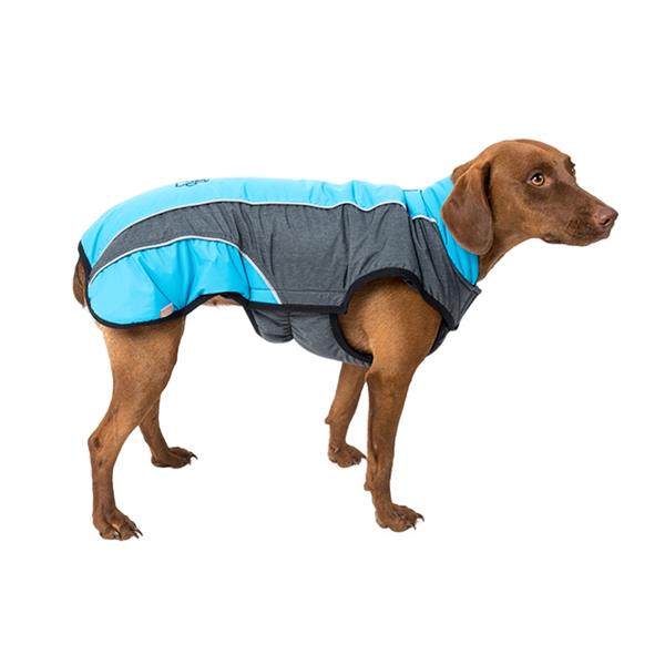 Zimní vesta ESMÉ LUX ochrání vašeho psa před chladem, větrem, deštěm i sněhem. Svrchní vrstva z bundové tkaniny s voděodolným zátěrem je zateplená vafixem a podšitá měkkým flanel fleecem, který nezacuchává srst. Obleček je tvarovaný tak, aby psa neomezoval v pohybu, a přitom chránil všechny důležité partie jeho těla. Gumičky na stehna a na ocásek zajišťují, aby vesta neodstávala v zadní části, a elastický lem brání úniku tepla po celém obvodu oblečku. Za krkem je otvor pro připnutí vodítka k obojku a poutko pro zavěšení (při sušení atd.). Oblékání je snadné a rychlé: vesta se zapíná na suché zipy – 1 pod krkem a 1 pod hrudníkem. Samozřejmostí jsou reflexní prvky.
