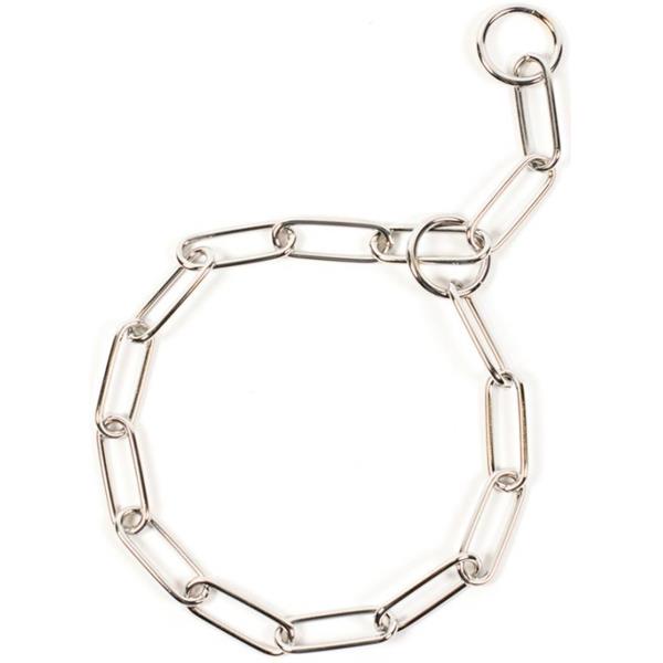 Pevný stahovací řetězový obojek s dlouhými oky.