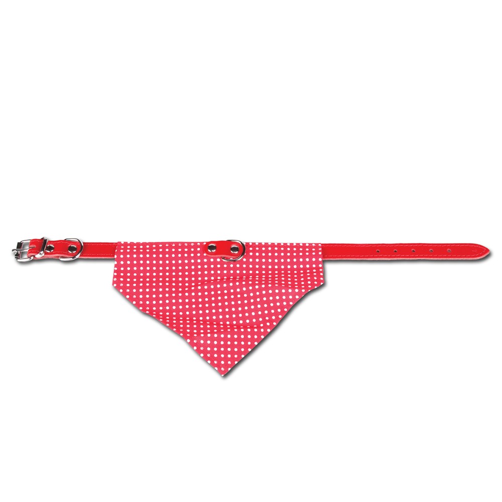 Ozdobný kožený obojek s bavlněným šátkem s puntíky.