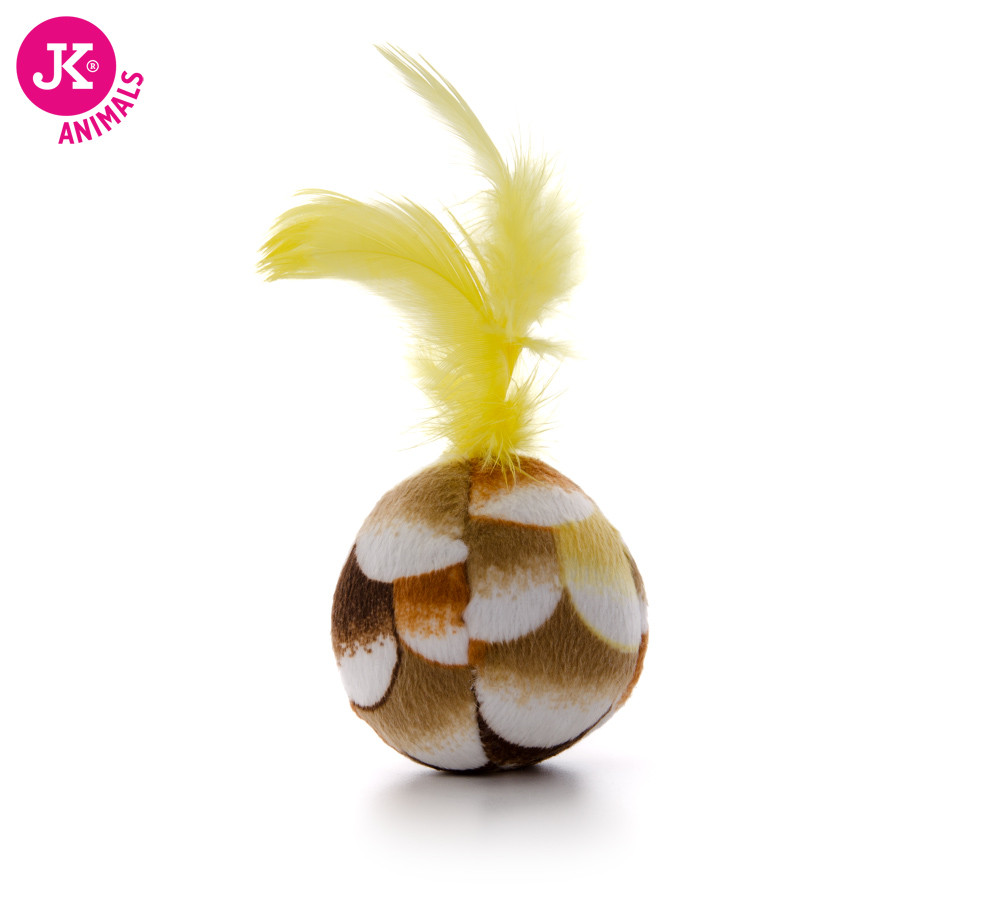 Plyšový míček se žlutým pírkem, hračkaSkladem 10 ks24 Kč/ ks20 Kč bez DPH