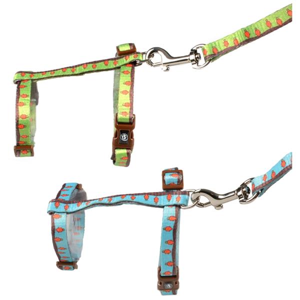 Tento pohodlný postroj lze nastavit tak, aby se perfektně přizpůsobil velikosti králíka. Je ušitý tak, aby optimálně rozložil tlak na tělo zvířete. Postroj má zapínání na přezky a vodítko je opatřeno dostatečně pevnou karabinou.