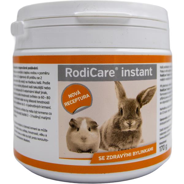 RodiCare Instant je hodnotné kompletní krmivo v práškové formě – tzv. „tekuté seno“ – určené pro zakrslé králíky, morčata, osmáky a činčily, kteří přechodně nemohou přijímat pevnou stravu. Je také vhodné k dočasné výživě zvířat s nechutenstvím, oslabených zvířat, před a po ošetření zubů a v rekonvalescenci, pro odchov osiřelých mláďat i jako doplněk krmiva u slabých a churavějících zvířat.