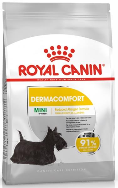 Krmivo Royal Canin Dermacomfort Mini nabízí Vašemu psovi optimální recepturu pro zlepšení pokožky a srsti. Věděli jste, že podráždění pokožky je nejčastějším důvodem, proč musí pes k veterináři? Citlivá, svědící kůže znamená spoustu škrábání. Kůže se pak může poškodit drápy a hrozí riziko infekce. Krmivo ROYAL CANIN Dermacomfort Mini se sníženým obsahem alergenů je pečlivě připravováno za použití speciálně vybrané řady bílkovin. Tato specificky upravená výživa pomáhá udržovat pokožku vašeho psa v co nejlepším stavu. Také napomáhá udržovat srst hustou a zdravou.