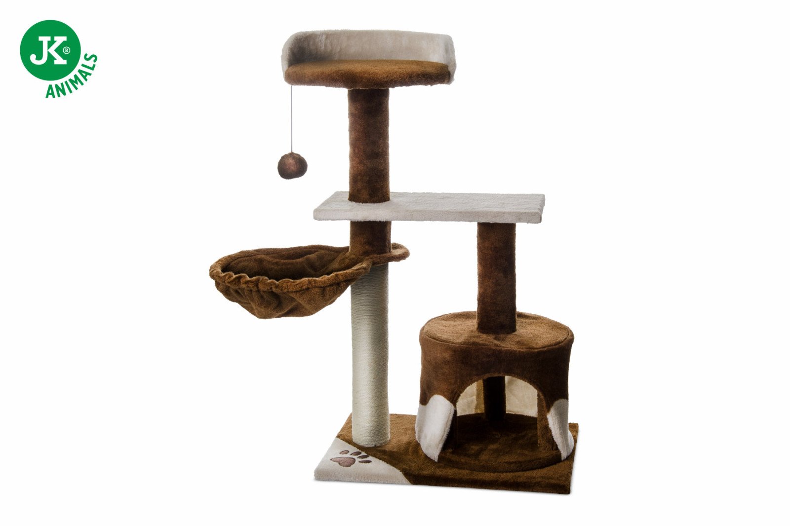 Praktické škrabadlo pro kočky žijící v bytě s mnoha zónami odpočinku i aktivit. Toto středně velké škrabadlo se hodí do domácností i s více kočkami. Škrabadlo obsahuje uzavřenou skrýš, aby se měly kočky kde schovat. Vyvýšenou odpočinkovou plochu pro spaní s pevným okrajem. Patro s vyhlídkou a pohodlný pelíšek zavěšený ve vzduchu. Nechybí ani bambule na provázku, se kterou si kočky rády hrají. Sloup je potažený odolným přírodním sisalem vhodným pro péči a udržování drápků.