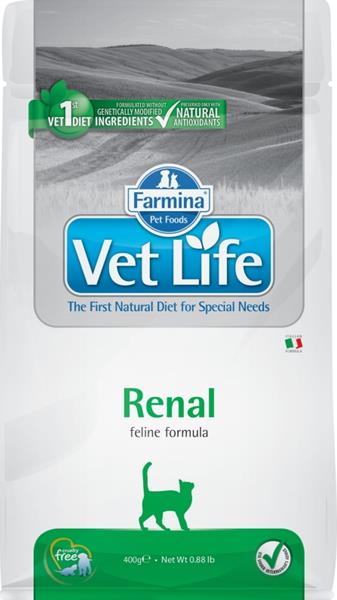 Doporučuje se vyhledat názor veterináře před tím, než vaše kočka začne krmivo užívat a před tím, než se prodlouží doba užívání krmiva. Doporučená doba užívání: ze začátku používejte Vet Life Renal maximálně po dobu šesti měsíců (2-4 týdny v případě akutní nedostatečnosti ledvin).