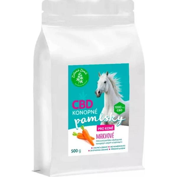 Mrkvové pamlsky pro koně jsou vyrobeny z přírodních ingrediencí, zcela bez obilovin (grain-free) a obohaceny CBD, který působí protizánětlivě, ulevuje od bolesti a snižuje stres. Pamlsky jsou vhodné pro koně trpící artrózou nebo stresem a pomáhají při regeneraci po úrazech a veterinárních zákrocích.