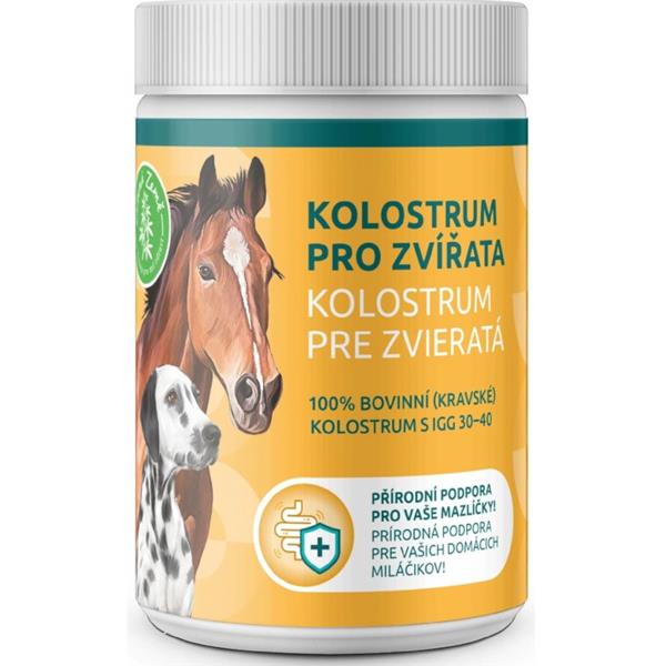 Kolostrum Zelená země posiluje imunitu, zlepšuje trávení a podporuje regeneraci u psů, koček, drobných savců, koní, skotu, koz, ovcí a prasat všech plemen a věkových kategorií. Kolostrum, označované též jako mlezivo, je takzvané prvotní mléko u savců. Tvoří se v mléčné žláze těsně před porodem a je produkováno asi 3–5 dní po něm. Složením se kolostrum významně liší od zralého mléka. Rozdíly ve složení mleziva se postupně mění a z nezralého mléka se stává mléko zralé. Je nenahraditelným zdrojem imunoglobulinů, bílkovin, vitamínů a minerálů. Kolostrum je vhodné pro zvířata jako náhrada mateřského mléka pro novorozená mláďata, při rekonvalescenci po nemoci nebo veterinárním zákroku nebo při oslabení imunity, dále jako podpora v období stresu a fyzické zátěže či pomoc při zánětech a bakteriálních infekcích.